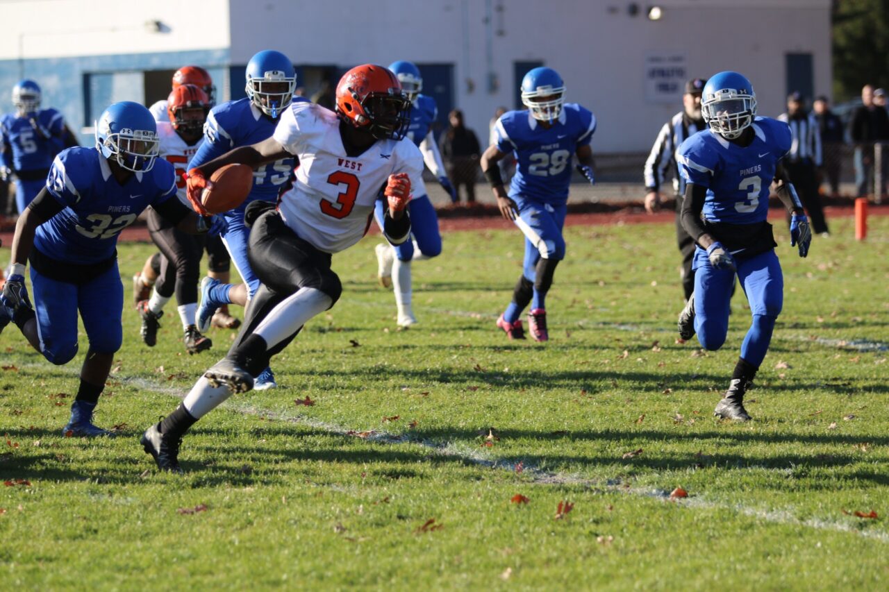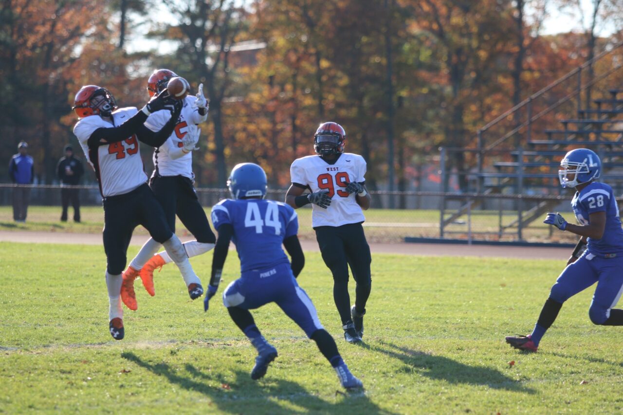 Midway through the third quarter, Lakewood struck for a long TD pass but missed another 2-point attempt and it was 12-6. Early in the fourth quarter, lineman James White came up with the game’s key play. With Lakewood trying to pass, White leaped up to block it and came down to rip the ball from the quarterback and give West possession at the Piners’ 11.